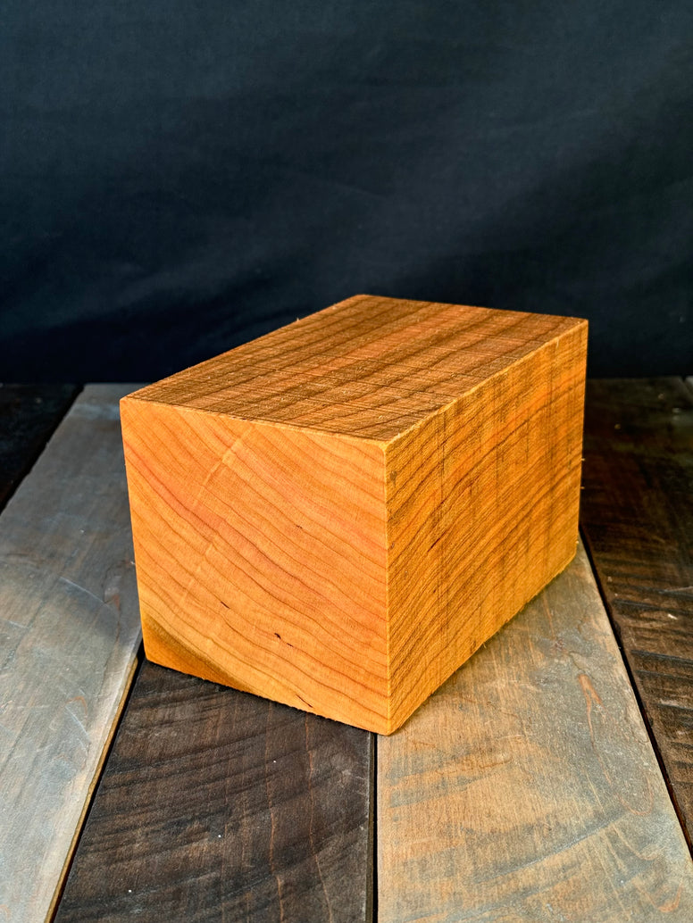 4” x 4” x 6“ cherry turning blank harvested from my sawmill in Indiana. This blank is green and fresh cut sizes my very a little. Also, the blank you see pictured would not be the one you Will be receiving it will be something very similar since all wood is different.